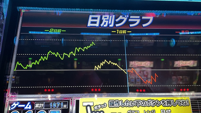 やっぱ800ハマりは痛手ですな。っつか2日前の楽しそうなグラフ!!ズルい!!